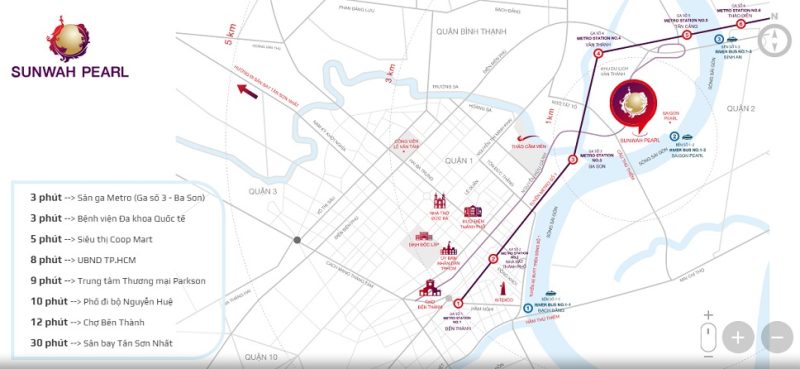Dự án nằm trong phân khu 3 của trung tâm TP.HCM mở rộng, liền kề các dự án đình đám như Saigon Pearl, Vinhomes Central Park và Vinhomes Golden River. Từ đây, cư dân di chuyển vô cùng thuận tiện: