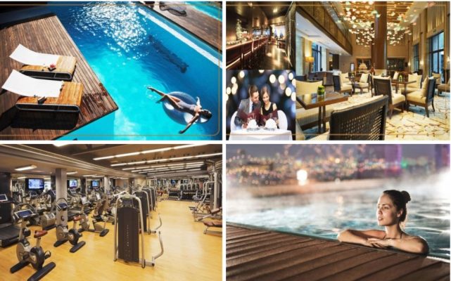 - Hồ bơi tràn bờ nước mặn và bể Jacuzzi thủy trị liệu