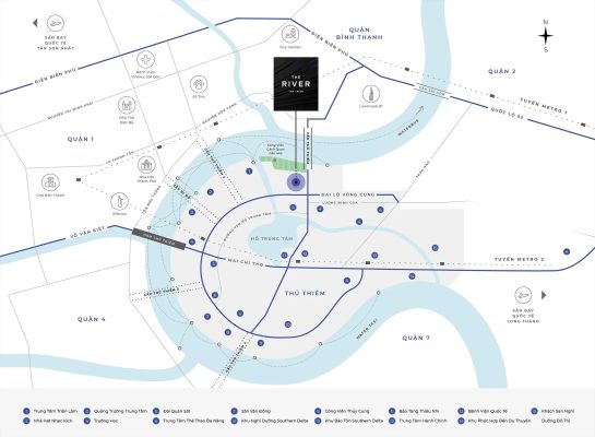 - Ngoài ra The River Thủ Thiêm còn nằm trong bán kính tiếp cận thuận tiện với các tiện ích đẳng cấp quốc tế sắp hình thành tại Thủ Thiêm như Trung tâm Tài chính quốc tế, Nhà hát Opera, Quảng trường trung tâm, Công viên ven sông… Đây là những yếu tố then chốt góp phần gia tăng giá trị bất động sản trong tương lai.
