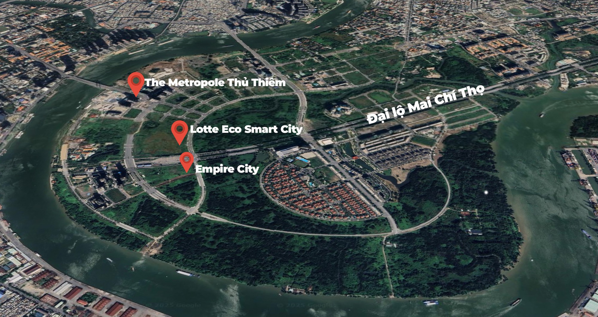Trong lộ trình xây dựng Trung tâm tài chính quốc tế TP.HCM, khu đô thị mới Thủ Thiêm đang được xác định là hạt nhân mở rộng từ lõi trung tâm hiện hữu sang bờ Đông sông Sài Gòn. Trên quỹ đất ven sông tại khu vực lõi Thủ Thiêm, ba dự án lớn gồm The Metropole Thủ Thiêm, Empire City và Lotte Eco Smart City đang phản ánh ba trạng thái phát triển hoàn toàn khác nhau, cho thấy sự phân hóa rõ rệt về tiến độ và khả năng triển khai.